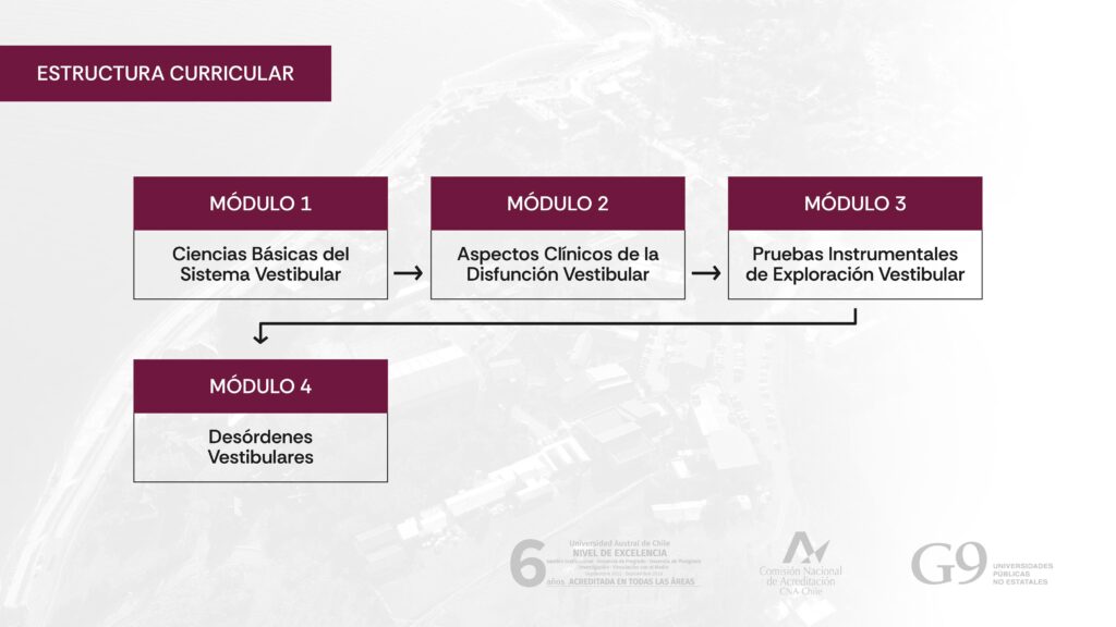 Estructura curricular_____El Diplomado en Medicina Vestibular Elemental de la Sede Puerto Montt de la Universidad Austral de Chile presenta la siguiente estructura curricular: